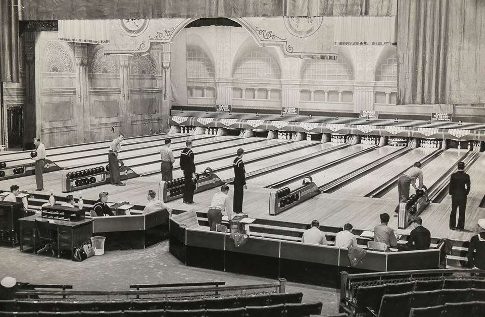 During World War II the city commandeered the theatre for use as the Auditorium Servicemen’s Center (a USO center) for feeding and entertainment, which included converting part of the theatre into a bowling alley.