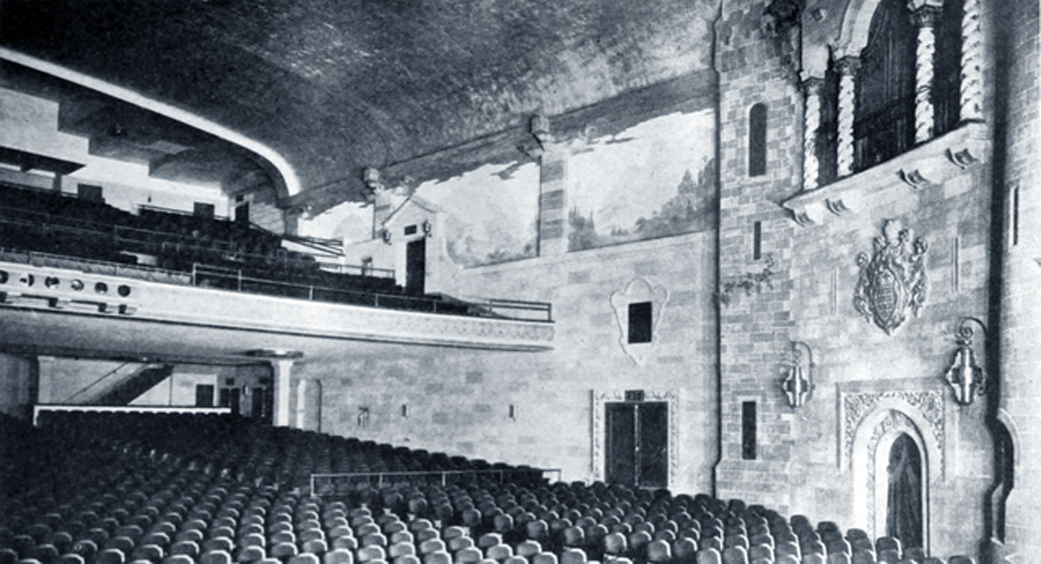 The Queensboro was the first atmospheric style theatre to be built in Queens. Architect John W. Schladtiz designed the interior to mimic a Spanish medieval castle with Italian influences. The fire curtain was painted with the appearance of a castle entrance with a looming portcullis above. The theatre was equipped with a Link 3-manual, 10-rank organ.
