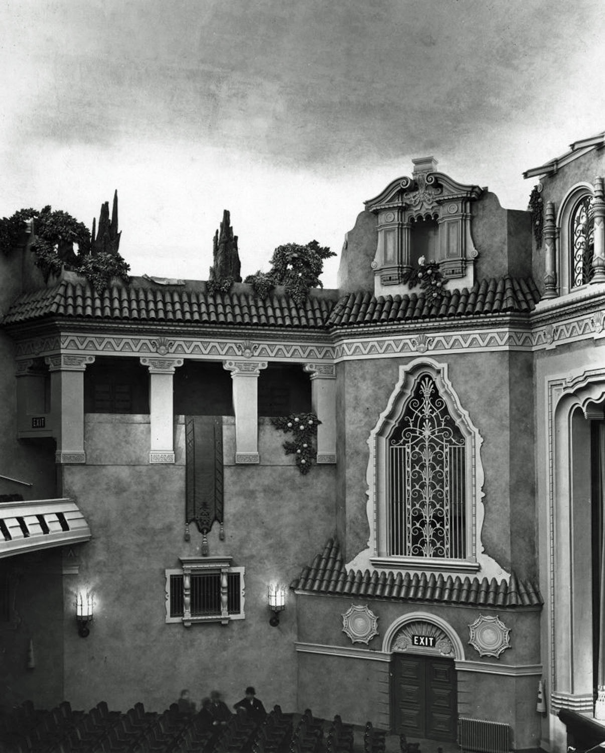 The auditorium was split into three separate screens in 1972 (two independent screens on the lower level and a single screen on the upper level). Only the upper auditorium retains the Atmospheric features of the original 1930 architecture which includes grillwork, tiling, and Moorish-style arches.