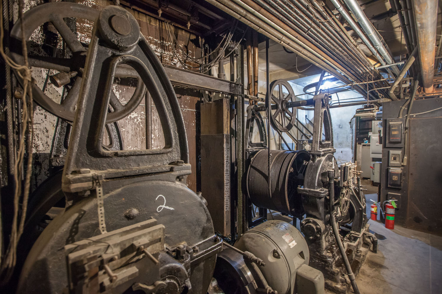 Lansburgh designed the building with retail space at street level flanking the theatre’s main entrance, and office space on multiple levels facing onto Broadway. The two-story top level, with its huge double-height windows and lofty outlook, is a favorite for movie location shoots. Entrance to the office space is from the alley at the south side of the theatre, where two original manually-operated elevators are still working in situ.