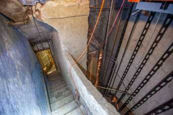 The auditorium consists of a long, sloped, orchestra level with a shallow balcony at the rear. Original seating capacity was given as 1,776. The auditorium measures 100ft wide by 150ft long. A small secondary upper balcony was originally an exclusive club called El Club Chico, with a glazed outlook into the auditorium allowing patrons to dine in private but still watch the show. With an exterior terrace looking out north and east over downtown Santa Barbara, private restrooms, kitchen facilities providing food, and a private view into the auditorium, it was certainly the place to be! The upper balcony is now used as a lighting and followspot position. It would be desirable to reactivate the space for special events however there is only one access point and so the space does not meet current code requirements.