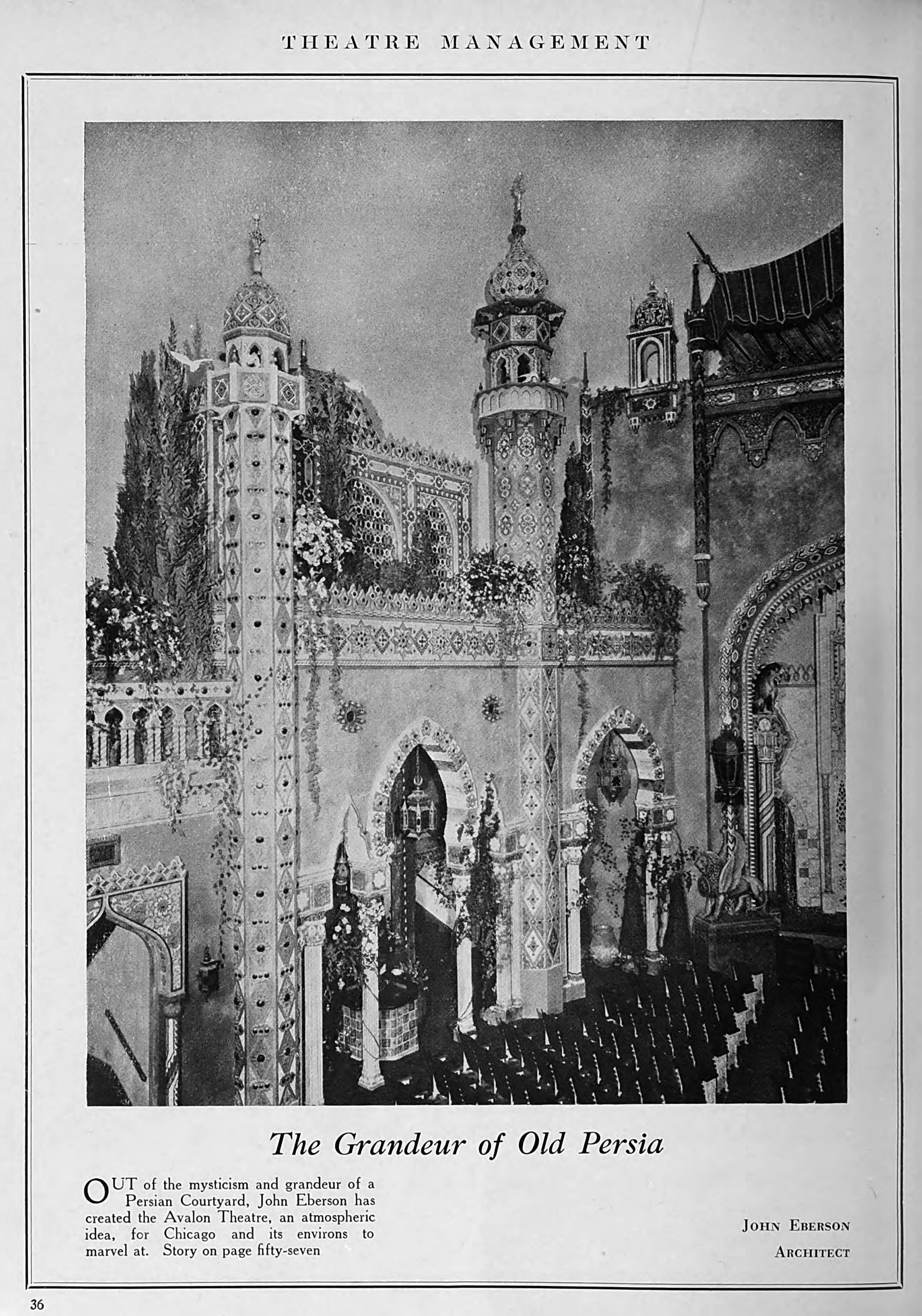 Opened as the 2,250-seat Avalon Theater in August 1927, the Avalon was designed as a combination vaudeville and motion picture theatre and was famous for its elaborate and exotic Middle Eastern interior, described as Persian at the time of opening.