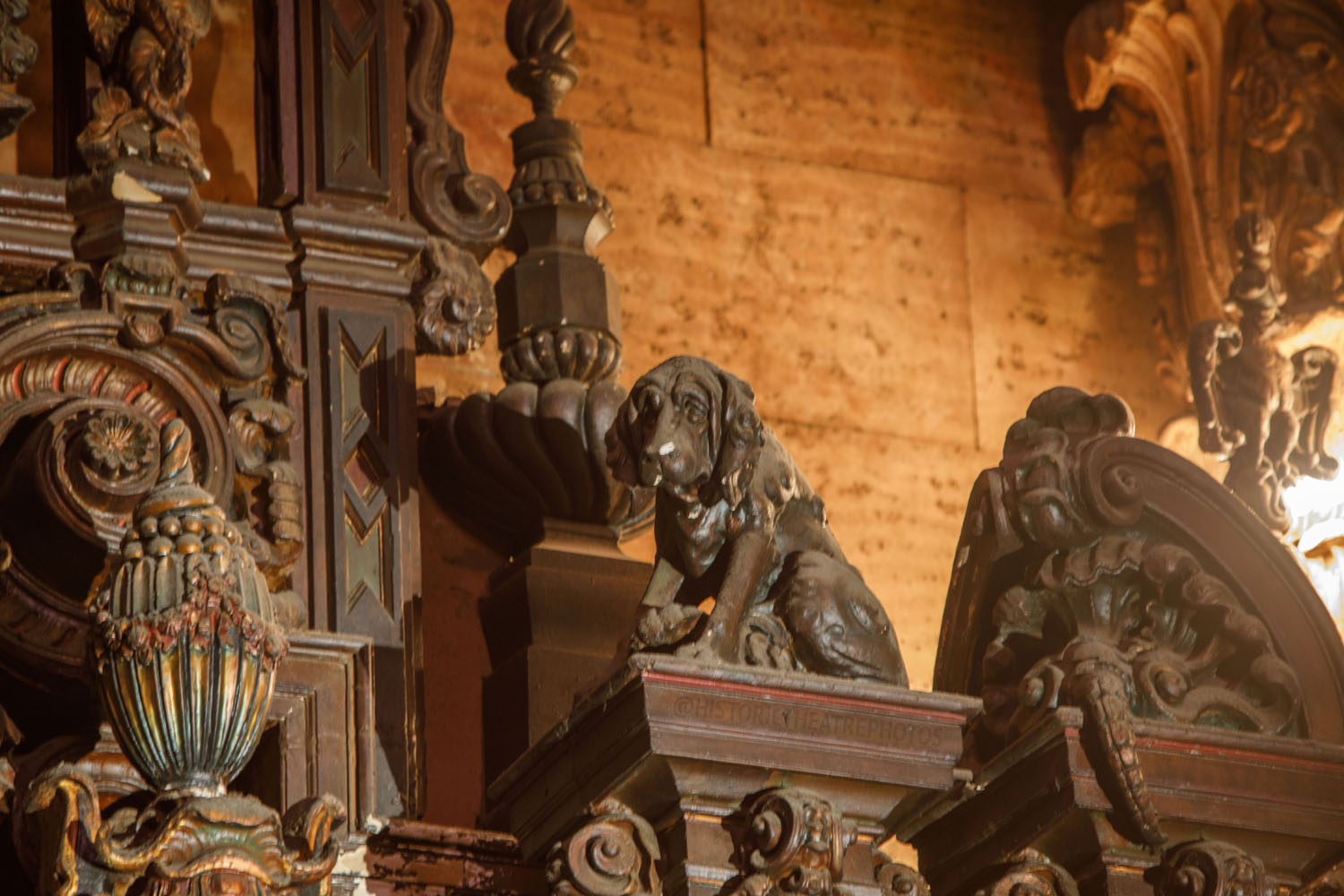 The original organ was superseded in September 1918 by a larger 2-manual, 16-rank, Style 35 Wurlitzer (opus 186). Although the organs are now gone (the original transferred to the Rialto Theatre on South Broadway - now an Urban Outfitters store), huge plaster organ grilles in the style of Spanish Colonial altar screens, now painted to look like wood but originally painted in much brighter colors, still flank the proscenium arch.