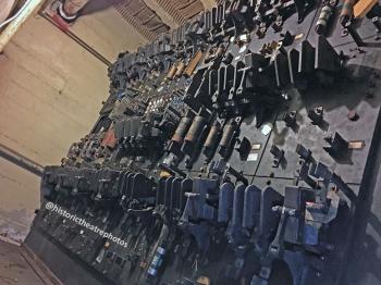 The theatre was originally a hemp house with flying scenery operated from the Fly Floor at Stage Right. A single purchase wire-guide counterweight system was installed at a later date, however hemp headblocks are still in place on the grid as is a pin rail, below the headblocks, on the Fly Floor.