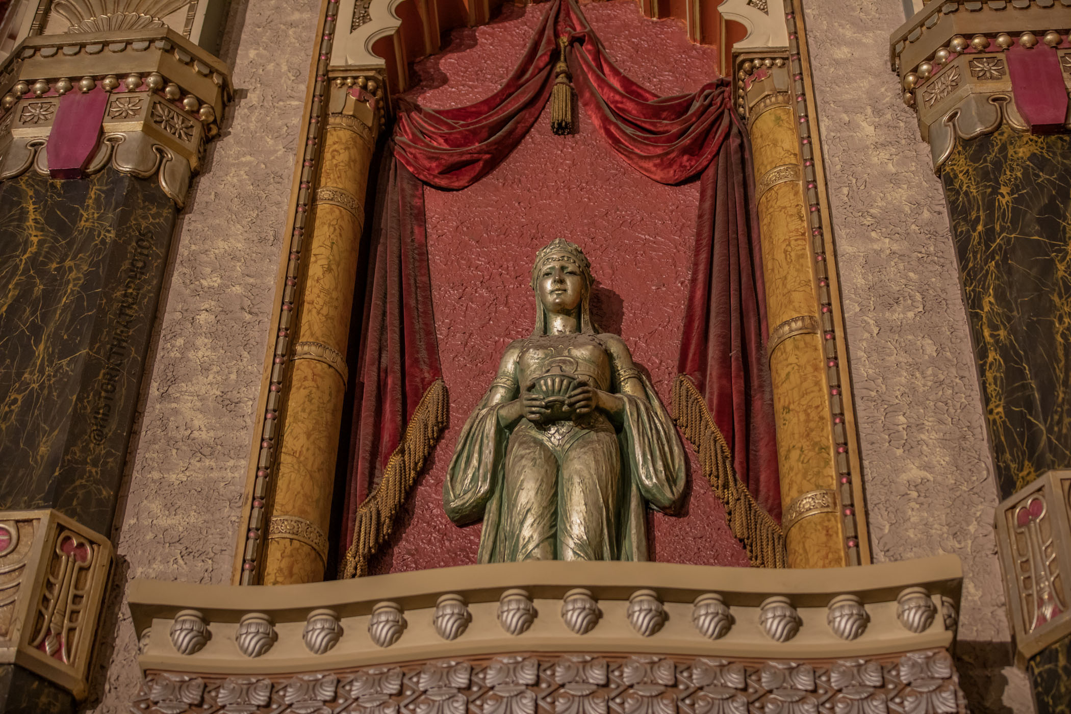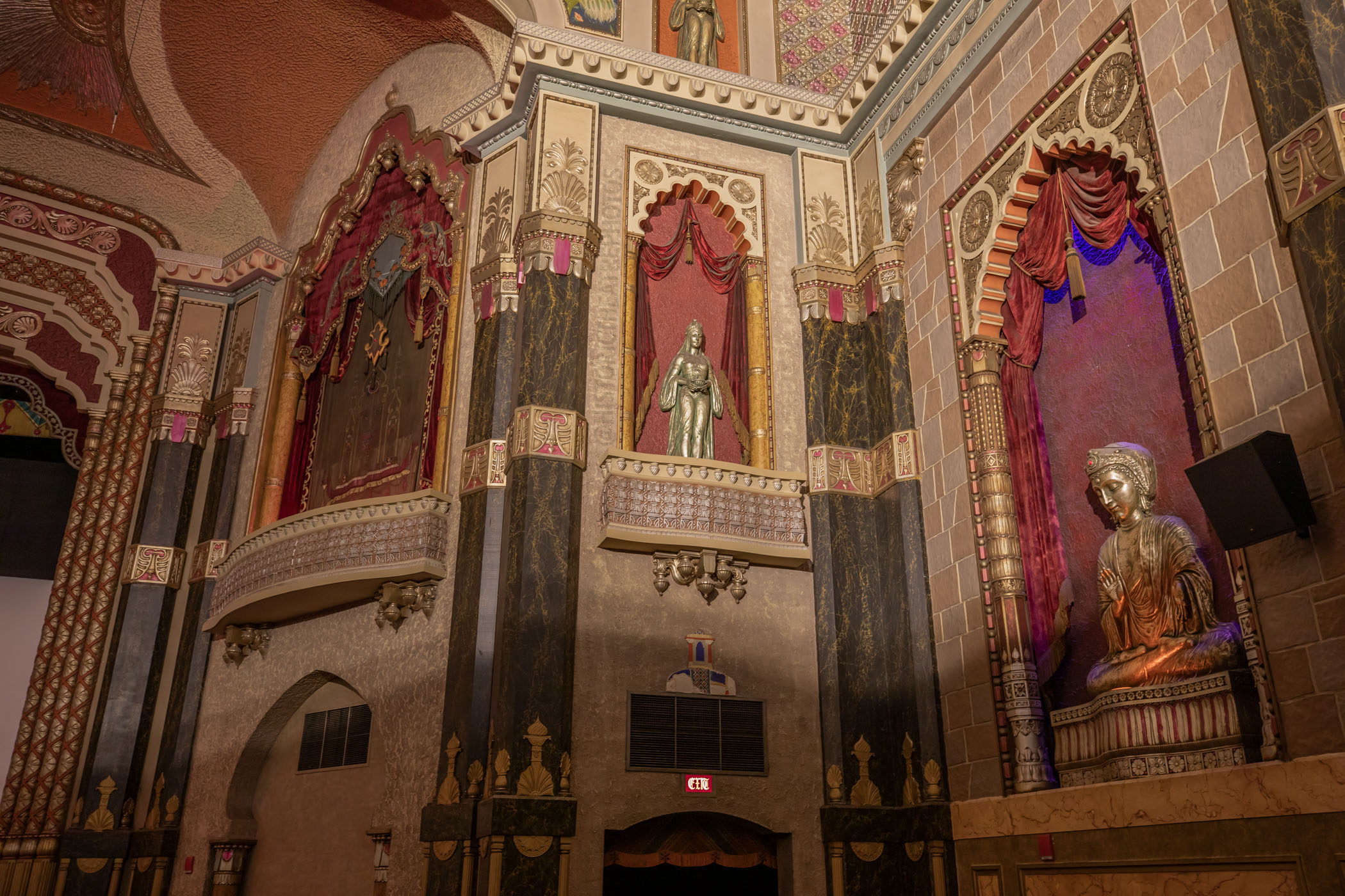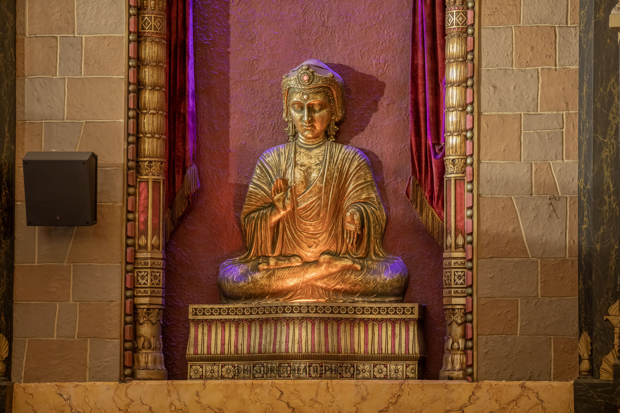 Milwaukee-based architect firm Dick & Bauer, comprised of architects Gustave A. Dick and Alex Bauer, designed the theatre with an East Indian theme that drew inspiration from Indian, Moorish, Islamic, and Byzantine styles. At the time of the theatre’s opening it was noted in the press that the auditorium featured “Buddhist idols, dragons, elephants and colored lights all blend[ing] into a mystic symphony of the Orient”.
