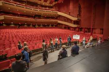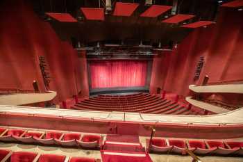 At the theatre’s opening, just 16 months after construction began, its acoustics were universally praised. The architect team stated that the theatre’s acoustics were afforded the highest priority at the design stage, with the main level Orchestra section being a modified semi-circle and the mezzanine and balcony being chevron-shaped “because it was acoustically best [for each area]”. In the auditorium, carpet was only provided in the aisles – not in each row of seats – to assist with the acoustic response.