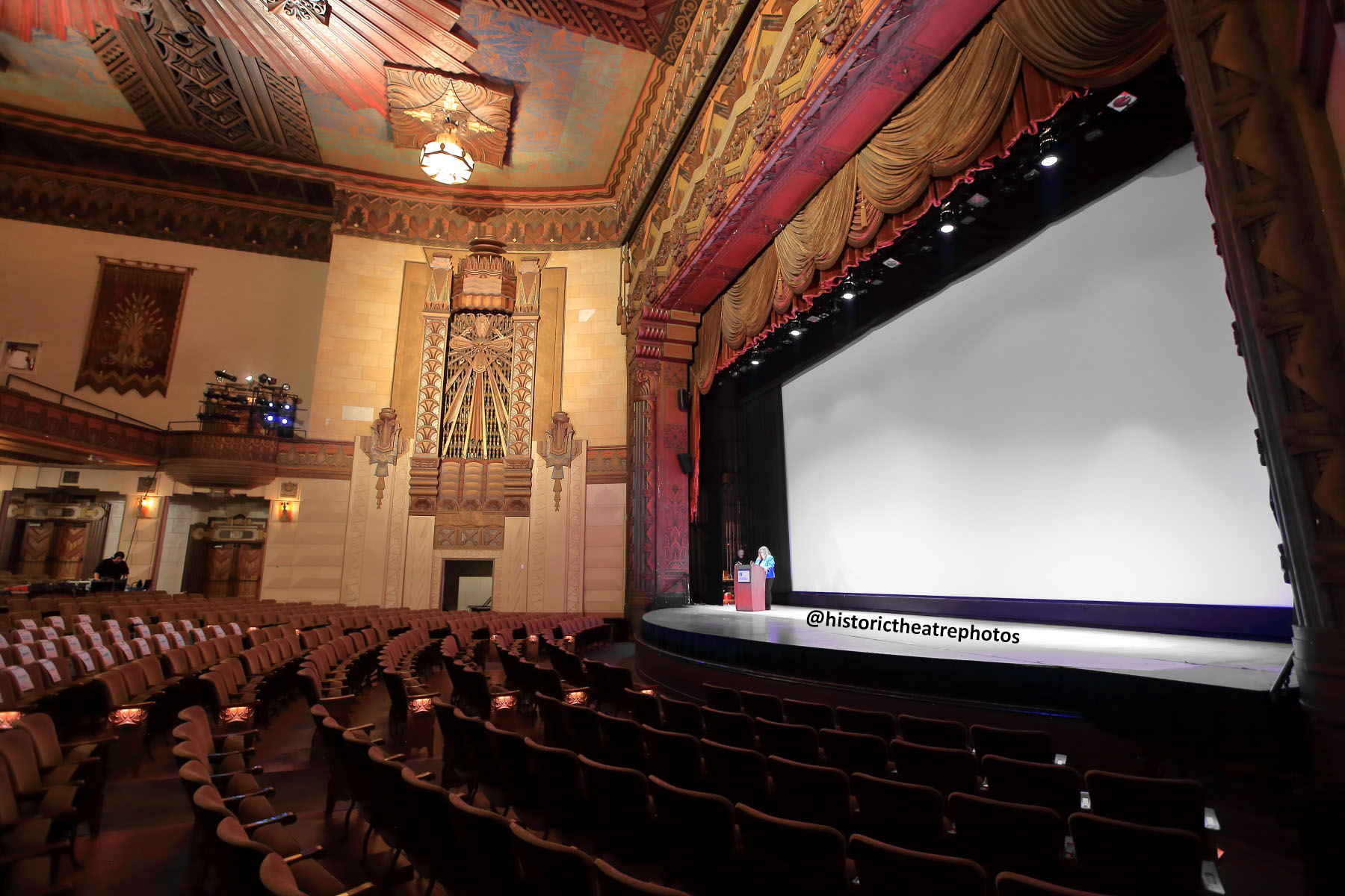 HVAC systems were upgraded in 2004, new seating was installed in 2006 along with a major interior renovation, and in 2014 the theatre’s original fire curtain, painted by Armstrong Studios of Los Angeles, was “rediscovered”. In 2018 an appeal was launched called “Love the Lobby”, with the intent of restoring the original painted Art Deco designs of the main lobby ceiling.